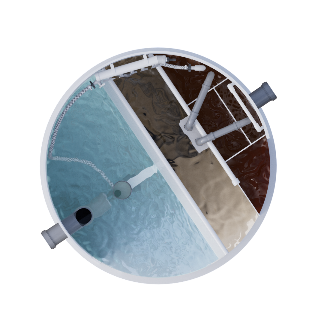 Zariadenie sa prednostne umiestňuje v exteriéroch a osádza sa na betónovú dosku pod úroveň terénu. Pripája sa na ležatú kanalizáciu, pričom priemer prítokového a odtokového potrubia zariadenia je možné prispôsobiť pri výrobe. Podľa hĺbky kanalizácie sa volí výška nadstavca. Spôsob osadenia konkrétneho zariadenia si vyžiadajte u dodávateľa.